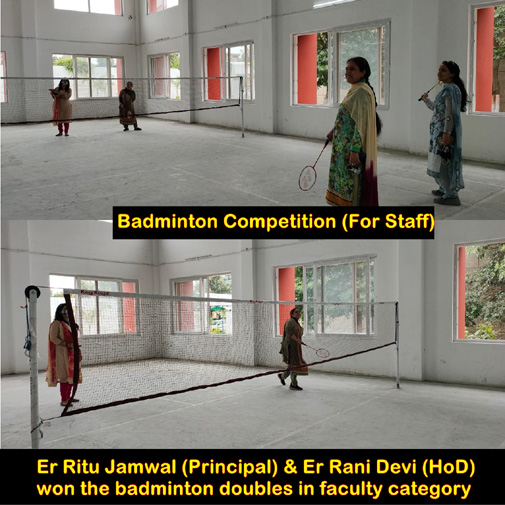 - Er. Ritu Jamwal (Principal) and Er. Rani Devi (HoD) won the Badminton (Double) in staff category