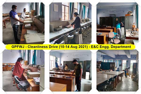 Faculty & Staff of Government Polytechnic for Women Jammu participated in the “Cleanliness Drive” – a part of Patriotic Week (09-15 August 2021) Celebrations. They cleaned their rooms & Departments in the institution. Er Neelanjana Manwati (Principal GPFWJ) starts the week-long drive with the slogan “One Step Towards Cleanliness” and informs that cleanliness is the most important for physical well-being and a healthy environment. The Faculty & Staff also participated in creating awareness among the public, & informing them about the importance of cleanliness. Mr Kamal Kumar, Lecturer Textile Designing is coordinating the cleanliness drive.